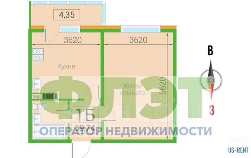 Компания оператор недвижимости "Флэт" предлагает 1-комнатную квартиру. Новострой. Спальный микрорайон. Черновая отделка.